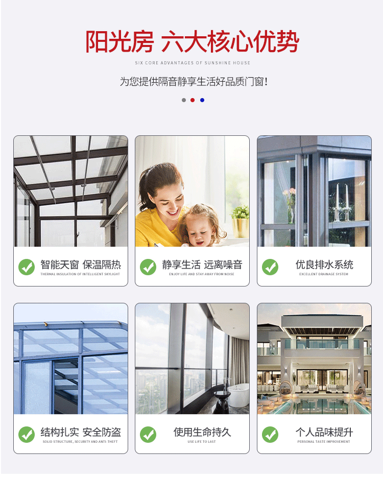 陽(yáng)光房按立面材料分類:鳳鋁斷橋鋁門窗,興發(fā)斷橋鋁門窗,鋁包木門窗,塑鋼門窗。