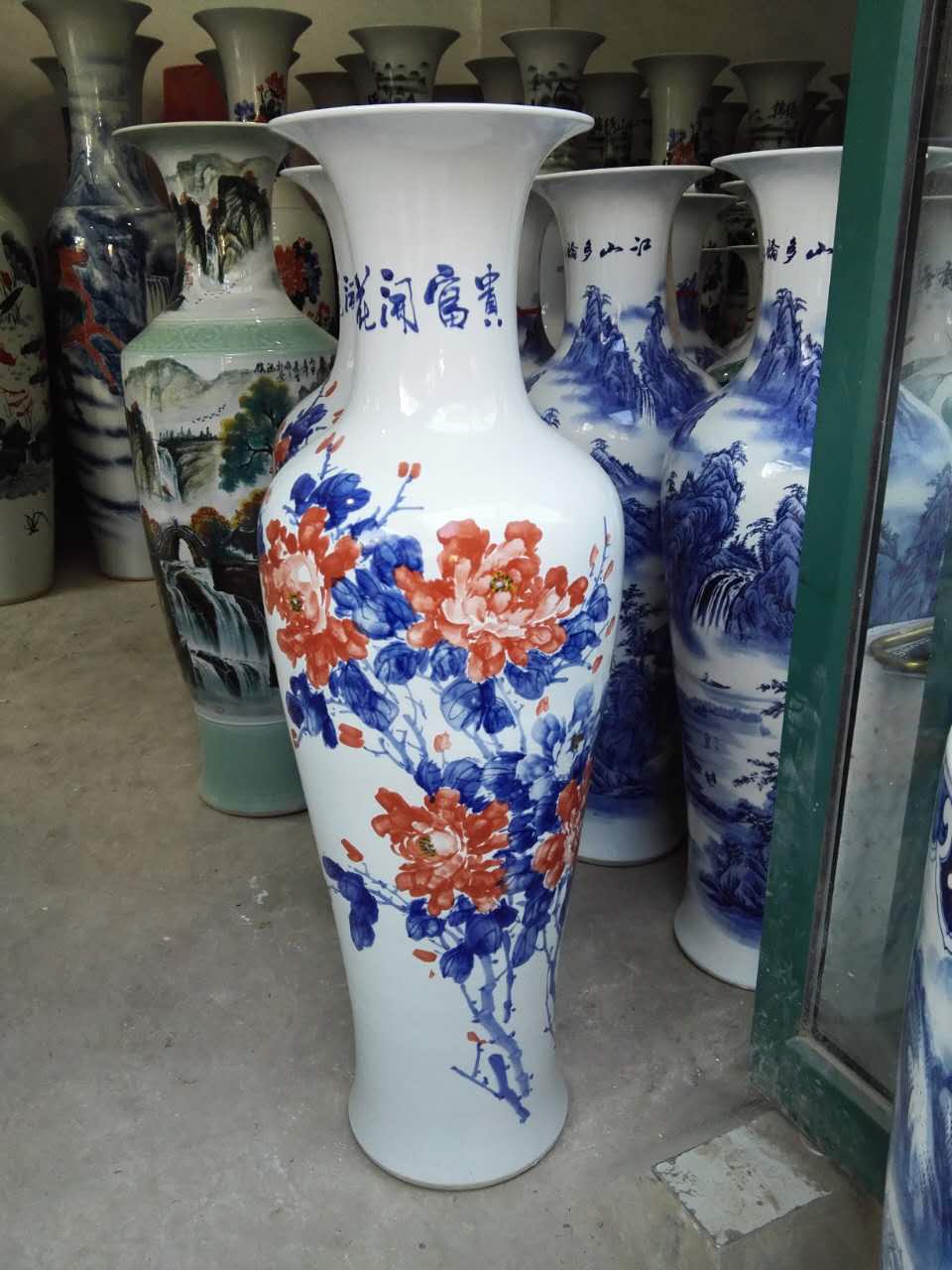 大花瓶器型大,所以顯得大器。擺放在酒店大堂、大廳尤其彰顯氣派。也可放在客廳背景墻或者沙發(fā)左右擺設(shè)景德鎮(zhèn)陶瓷大花瓶經(jīng)過1300度以上高溫?zé)贫?,具有變形,不褪色,,健康,環(huán)保的特色。酒店大堂裝飾大花瓶多用于大廳、門廳、客廳等擺設(shè),用于開業(yè)禮品,大樓建筑落成、工程竣工開業(yè)、奠基典禮、酒店賓館陳設(shè)、企事業(yè)單位喬遷、周年紀(jì)念、學(xué)校校慶、搬遷新居等。就在于它的外形(特)大氣、保存留念時間長,欣賞價值高。歷來在景德鎮(zhèn)陶瓷制瓷史上,越大規(guī)格的陶瓷就越難生產(chǎn)。因?yàn)橐?guī)格大的陶瓷生產(chǎn)的時候,酒店大堂裝飾大花瓶經(jīng)過1300多度的高溫窯燒制很容易變形,也就是所謂的不成形。所以一個成型的陶瓷大花瓶工藝是相當(dāng)復(fù)雜的。酒店大堂裝飾大花瓶的規(guī)格有多種,從1米到3.5米規(guī)格的都可以生產(chǎn)。但是景德鎮(zhèn)陶瓷廠家也有自己*常生產(chǎn)的規(guī)格,高度有1米,1.2米,1.4米,1.6米,1.8米,2米,2.2米,3米,3.5米景德鎮(zhèn)陶瓷廠家定做酒店大堂裝飾大花瓶,青花瓷器酒店裝飾花瓶,青花陶瓷酒店裝飾花瓶,雕刻酒店裝飾花瓶,景德鎮(zhèn)粉彩酒店裝飾花瓶,手繪粉彩山水酒店裝飾花瓶,周年紀(jì)念品酒店裝飾花瓶,慶典紀(jì)念品酒店裝飾花瓶,單位周年活動紀(jì)念品酒店裝飾花瓶,年終慶典紀(jì)念品酒店裝飾花瓶,酒店開業(yè)禮品酒店裝飾花瓶,新居喬遷禮品酒店裝飾花瓶等等