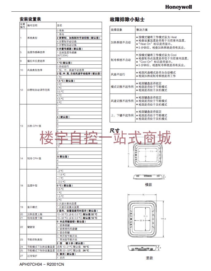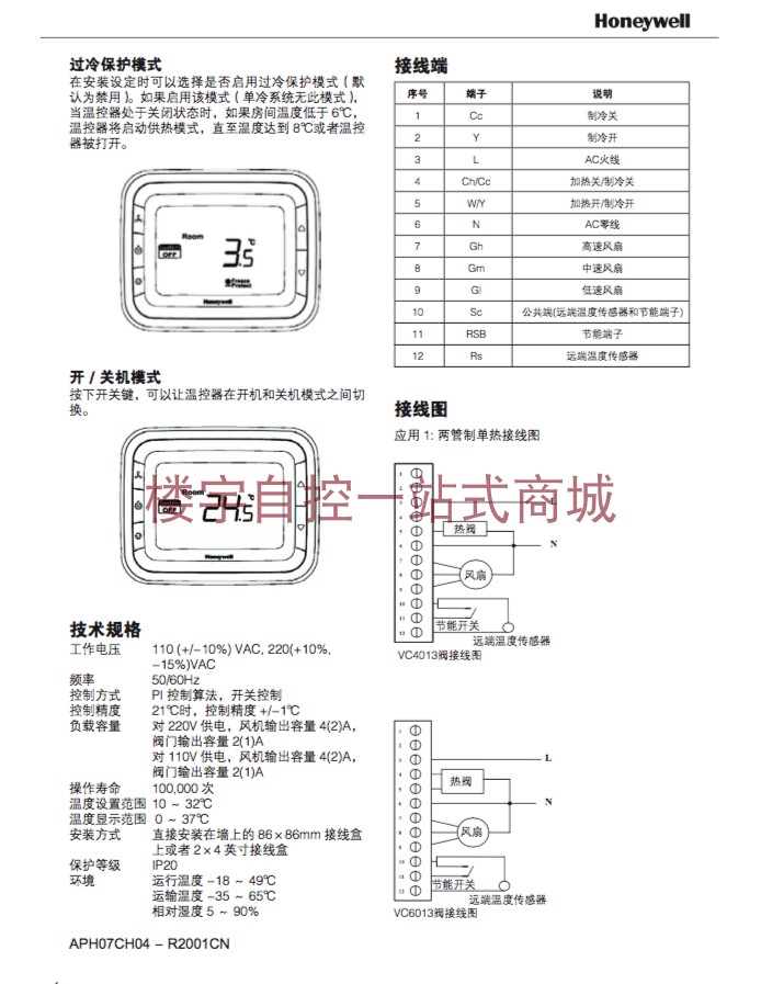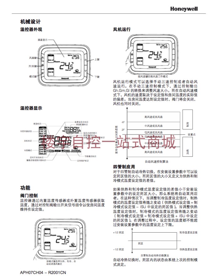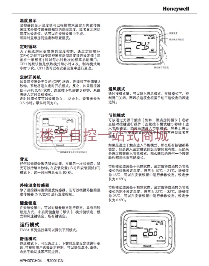 Honeywell霍尼韋爾溫控器T6861H2WB風(fēng)機(jī)盤管液晶溫控器開關(guān)