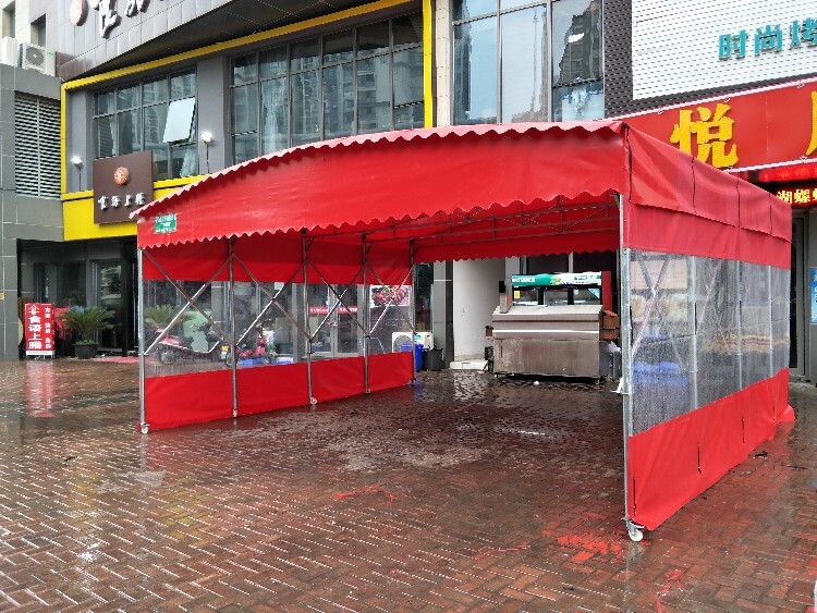 推拉雨棚是一種攜帶十分便捷的雨棚,十分好安裝和收納。大多數(shù)大排擋燒烤雨棚多以紅色、藍(lán)色為主,其結(jié)構(gòu)簡單,移動伸縮也很方便,可以幫客戶解決空間利用問題。除了夏季的美食街道和店鋪面口雨棚,我們還經(jīng)常在各大活動現(xiàn)場看到雨棚的身影,將一個個推拉雨棚支起,在四周擺上幾個凳子,架起來個桌子就可以了,一方面標(biāo)明此位置所屬店鋪,另一方面有效的為顧客提供良好的就餐環(huán)境。