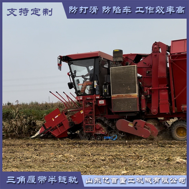 防陷半鏈軌的出現(xiàn),改變了收割機(jī)在惡劣地形中的作業(yè)局面。它以好的防陷、防滑性能,強(qiáng)大的適應(yīng)能力,在泥濘農(nóng)田、冰雪大地、山地果園、礦山等各種復(fù)雜環(huán)境中,為收割機(jī)保駕,助力農(nóng)業(yè)生產(chǎn)突破地形與氣候的受限,實(shí)現(xiàn)輕松、穩(wěn)定的作業(yè)目標(biāo),成為現(xiàn)代農(nóng)業(yè)生產(chǎn)中當(dāng)之無愧的 “戰(zhàn)場英雄” 。