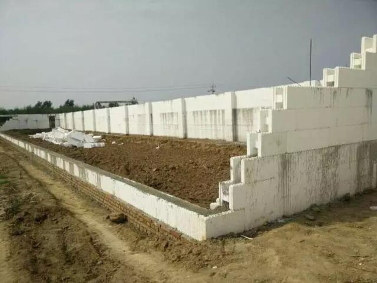 混凝土凝結(jié)牢固之后,就可以安插海容模塊了,安插時(shí)要和砌墻一樣,一排一排安插上去,當(dāng)安插到一定高度后,就可以放置橫向鋼筋籠和預(yù)留出豎向鋼筋了。