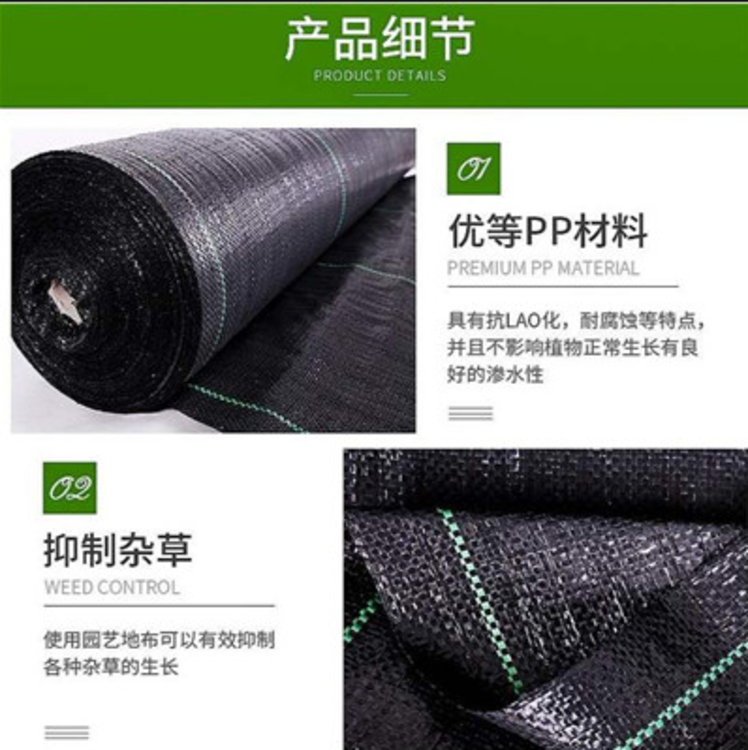 防草布產(chǎn)品生產(chǎn)原理為經(jīng)緯向編織結(jié)構(gòu),這種構(gòu)造可作物根部透氣透水,使根部的空氣具有一定的流動性,從而防止了果樹根部腐爛。