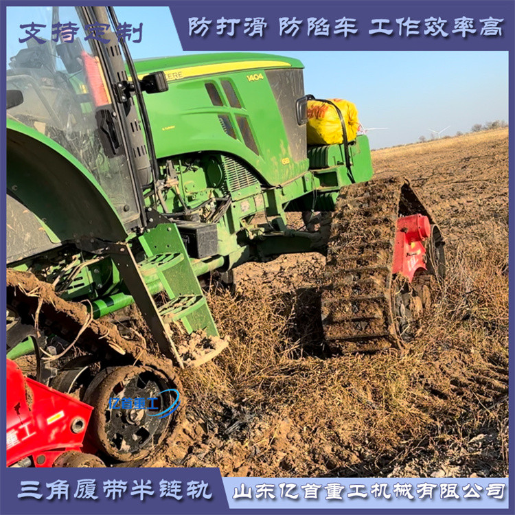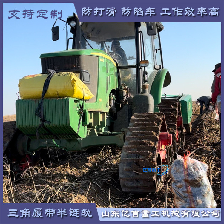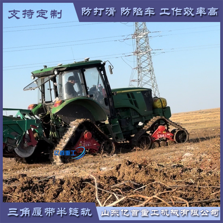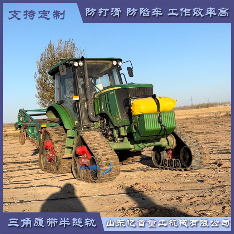 農(nóng)業(yè)作業(yè)場景:在我國南方的一些水稻種植區(qū),農(nóng)田在雨季時土壤非常松軟。以往,農(nóng)民使用普通輪胎的拖拉機進行耕地、播種等作業(yè)時,經(jīng)常會出現(xiàn)拖拉機陷入泥地的情況,不僅耽誤農(nóng)時,還需要花費大量人力物力將拖拉機從泥地中拖出。自從采用了防陷半鏈軌后,拖拉機在農(nóng)田中行駛變得輕松自如。半鏈軌的防滑防陷性能使得拖拉機能夠穩(wěn)定地在泥濘的農(nóng)田中作業(yè),提高了作業(yè)效率,減少了因車輛下陷帶來的損失。