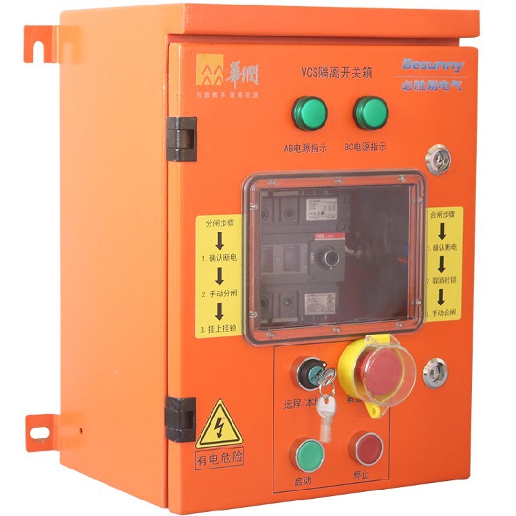 VCS可視隔離開(kāi)關(guān)箱是一種可視化且安全防護(hù)等級(jí)的配電設(shè)備,適用于配電設(shè)備緊急斷開(kāi)、就地安全斷開(kāi),以及電機(jī)起停控制、正反轉(zhuǎn)控制、變速驅(qū)動(dòng)控制等解決配電方案。隔離開(kāi)關(guān)的觸點(diǎn)能夠明確判斷,且箱內(nèi)與箱門設(shè)有機(jī)械聯(lián)鎖裝置,能夠滿足現(xiàn)代工業(yè)的現(xiàn)場(chǎng)使用要求。