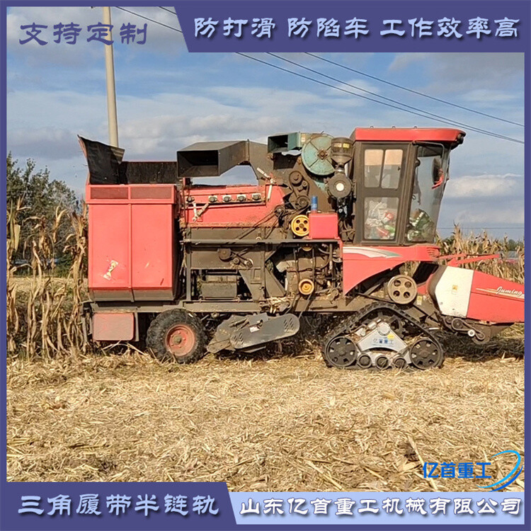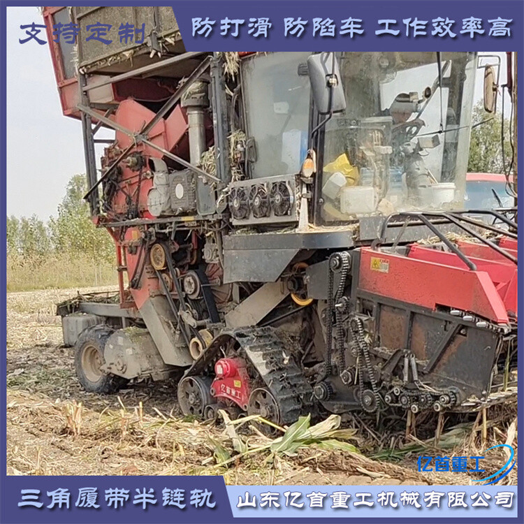 三角履帶總成低洼地塊,水稻田等泥濘狀態(tài)下使用,用于防止在土壤水分過(guò)大時(shí)收割機(jī)下陷。收割機(jī)防陷半履帶鏈軌在土壤平均含水率小于50條件下能正常作業(yè),地表有明水通過(guò)性能效果更好。