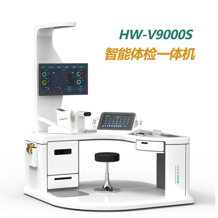 樂佳HW-V9000型智能健康體檢一體機,三個液晶屏:屏一、32寸多媒體顯示屏,可測量視力色盲;屏二、18.5寸操作顯示屏;屏三、11寸,醫(yī)護人員輔助操作屏。 腰臀比,視力色盲,動脈硬化,心理測評