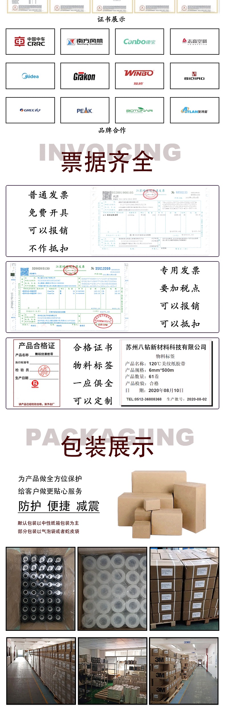 蘇州八鉆新材料科技有限公司,以下簡稱八鉆新科,座落于中最發(fā)達(dá)的長江三角洲-蘇州,集研發(fā)、涂布、模切加工、銷售為一體的從事特種粘膠帶制品制造廠商,能快速為客戶提供有效的膠粘解決方案,并可根據(jù)客戶的要求加工定制。公司興起于2001年,是國內(nèi)膠粘制品行業(yè)的主要制造商之一。主要生產(chǎn)產(chǎn)品有:耐高溫膠帶,雙面膠帶,醋酸布膠帶,瑪拉膠帶,保護(hù)膜,布基膠帶,美紋紙膠帶,鋁箔膠帶,銅箔膠帶,鐵氟龍膠帶,玻璃纖維膠帶,泡棉膠帶,亞克力膠帶,棉布坯布等;適用于汽車工業(yè)、電子工業(yè)、電氣工業(yè)、電池工業(yè),印刷工業(yè)、絲印工業(yè)、皮具工業(yè)、制鞋工業(yè)等領(lǐng)域。授權(quán)代理進(jìn)口品牌:德國德莎(TESA),美國3m,美國艾力,日本日東,索尼,寺岡。隨著我國科技工業(yè)不斷發(fā)展,我們?cè)诠芾砑夹g(shù),產(chǎn)品制造工藝等方面積極取收國內(nèi)外的先進(jìn)技術(shù),不斷創(chuàng)新。為了企業(yè)的長足發(fā)展和市場(chǎng)需要,我公司對(duì)產(chǎn)品的要求是“綠色環(huán)?!?、“精益求精”。我公司的產(chǎn)品除享譽(yù)江、浙、滬外,并已遠(yuǎn)銷日、韓、東南亞及歐美等國,深受客戶的青睞。熱忱的歡迎您的光臨和指導(dǎo)。