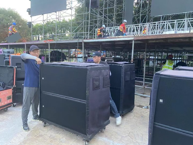 主音響系統(tǒng):包括線陣列音箱、全頻音箱、低音箱等,用于放大音樂(lè)和人聲,覆蓋全場(chǎng)音效。