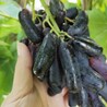 葉片中等大,較厚,向上卷,心臟形,三裂或五裂,上側(cè)裂刻淺或深,下側(cè)裂刻淺,葉背密被灰白色絨毛,葉緣鋸齒三角形,大小相間,葉柄洼呈尖底拱形?;▋尚浴9氪?,平均穗重476克,大穗重1070克,圓錐形或圓柱形,少數(shù)有副穗。果粒著生緊密或中等,平均粒重10.8克,大粒重20克,橢圓形,紫黑至藍(lán)黑色,果粉厚,果皮中等厚,肉質(zhì)中等或較軟,汁多,味酸甜,微有草莓香味,可溶性固形物含量13.5%~18%,含酸量0.65%~0.9%,品質(zhì)中。